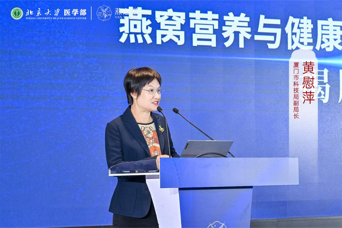 揭牌仪式开场,厦门市科技局副局长黄慰萍发表致辞,她首先代表厦门市科技局对实验室的成立表示热烈地祝贺,并表示:“燕之屋一直致力于推动燕窝产业的创新发展,拥有先进的燕窝研发技术和丰富的市场经验。北京大学医学部具有百年的历史,具有雄厚的科研实力和丰富的教学经验。两家校企合作,将充分发挥各自的优势,共同推动医疗科技创新和应用。作为北京大学医学部和燕之屋联合实验室揭牌仪式的见证人,我也深信这次的合作将带来重要的发展意义,双方将以此为新的契机和起点,探寻科技成果转化的新思路和新举措,深度融合医学科研研究的创新力量,产出一批真正能服务于国民健康的优质创新成果,从而进一步推动燕窝行业的高质量发展。”