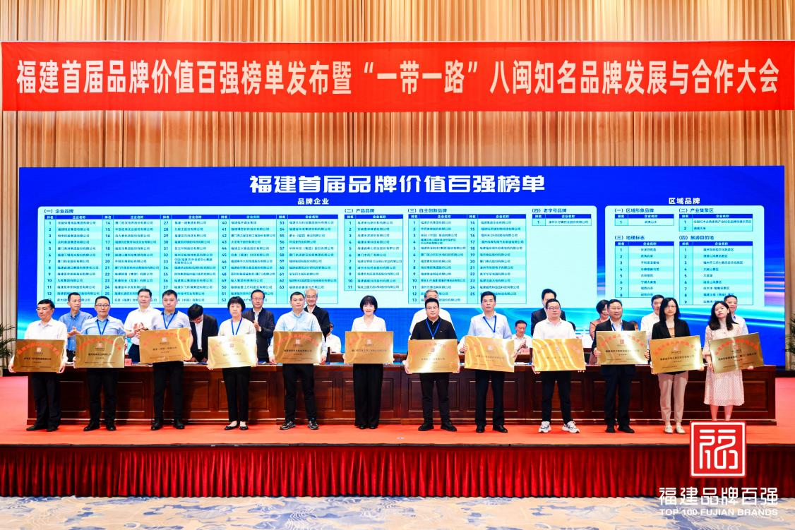 图:福建首届品牌价值百强牌匾颁授(左六:燕之屋品牌中心副总监杨航)