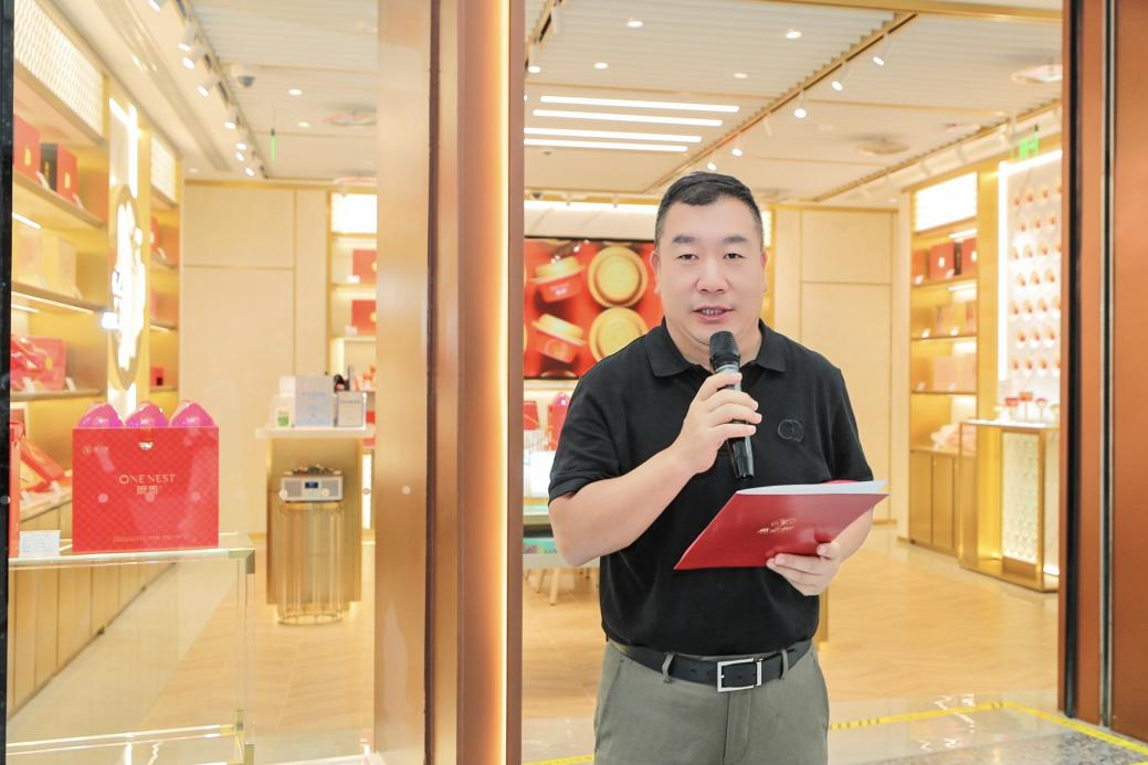 现场,燕之屋执行董事、总裁李有泉为活动致辞,他向所有远道而来的领导、贵宾们表示衷心的感谢,并代表燕之屋向燕之屋北京大兴国际机场旗舰店送上热烈的祝福。他说道:“了解燕之屋的都知道,我们企业成立于1997年,今年是我们的第25周年,在这二十几载的岁月中,我们不仅为燕窝行业的标准化和规范化提交了满意答卷,也为高端品质人士推出了滋补品牌碗燕,我们从未停下前进的步伐,为引领全球燕窝行业,打造百年民族品牌而不断努力。燕之屋牵手北京大兴机场,是燕之屋企业版图的再一次开拓,也是燕之屋事业的再一次全新的探索,我坚信,燕之屋北京大兴机场店一定能给我们增加更多机会,带来更多可能。”随后,各领导与嘉宾汇聚店前,在主持人的指引下,一同落剪彩带,预示着燕之屋北京大兴国际机场旗舰店璀璨绽放,自此书写属于它的新篇章。
