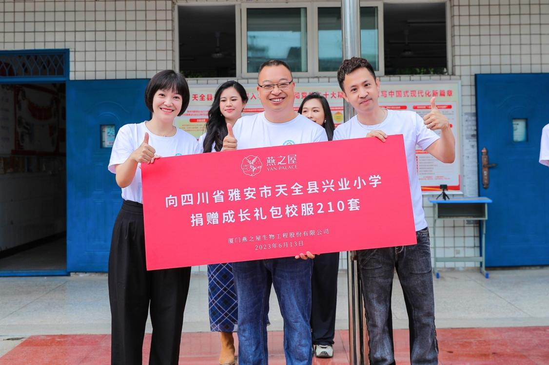 图:燕之屋向四川省雅安市天全县兴业小学捐赠成长礼包