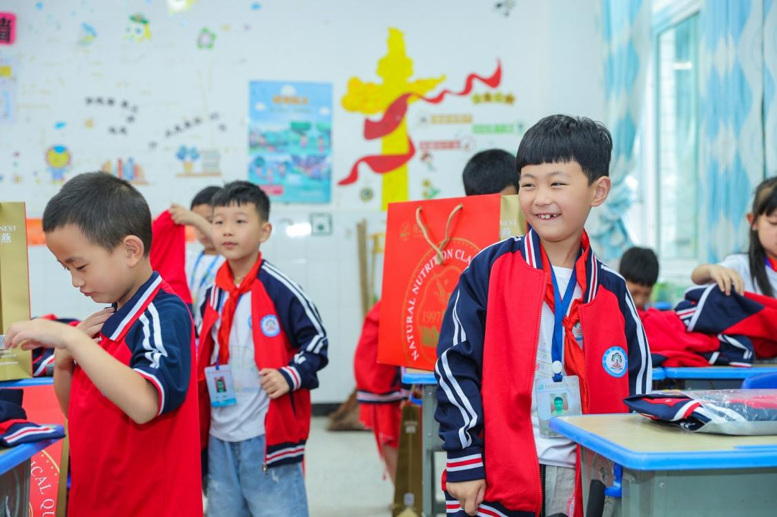 图:兴业小学的学生们穿上燕之屋捐赠的新校服