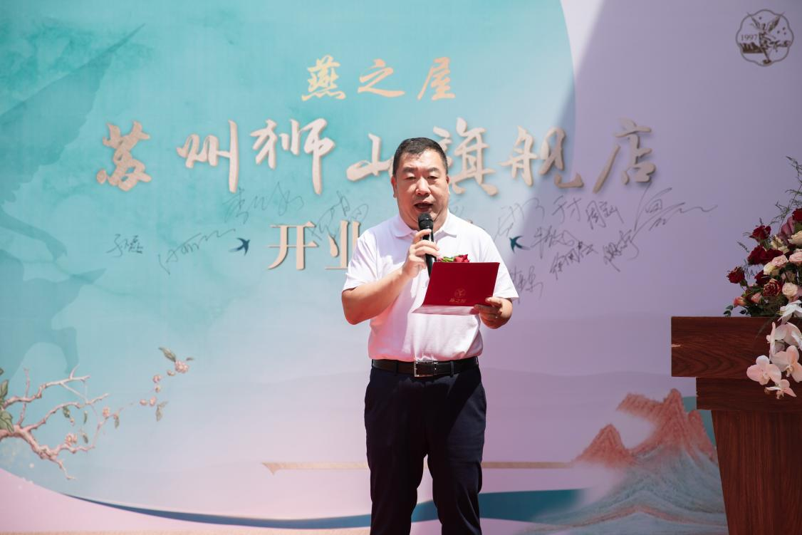当天,燕之屋执行董事、总裁李有泉,燕之屋副总经理、连锁事业部总经理翁惠贞出席开业庆典,与苏州无锡商会名誉会长戴局、苏州电视台新闻部主任鲁主任、苏州妇女联合商会会长倪总、苏州顺佳集团董事长沈总、苏州奥德集团董事长周总等百余位领导嘉宾齐聚一堂,共同见证这一启航时刻。开业盛典伊始,燕之屋执行董事、总裁李有泉代表总部向燕之屋苏州旗舰店送上诚挚的祝福,同时对所有远道而来的领导、贵宾们表示热烈的欢迎以及衷心的感谢,并发表开业致辞:“非常开心来到天仙居所般的姑苏城,一同见证燕之屋苏州旗舰店的开业仪式。我坚信,燕之屋苏州旗舰店一定能给我们带来更多机会,创造更多可能,同时,我也真诚地希望,燕之屋能借助苏州这座城市的力量,被更多人认识,被更多人选择和信赖!”