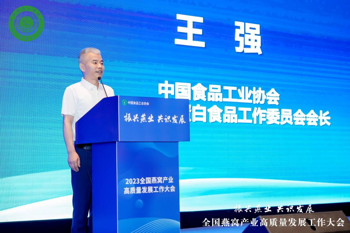 大会聚焦促进燕窝产业生产高质量发展,围绕巩固燕窝产业双边贸易进出口的持续稳定和增长,激发食用燕窝创新动力和食品安全约束并行等相关议题。中国食品工业协会燕窝及胶类蛋白食品工作委员会会长王强向与会者介绍了大会的背景和目标,他表示:“我们要让使用者、消费者有一个健康的保障,营养的供给,有一个幸福的生活满足感、幸福感。我们要让燕窝的经济活跃起来,推动我国的经济消费活跃。我们要做诚信经营的品牌,保证质量。”