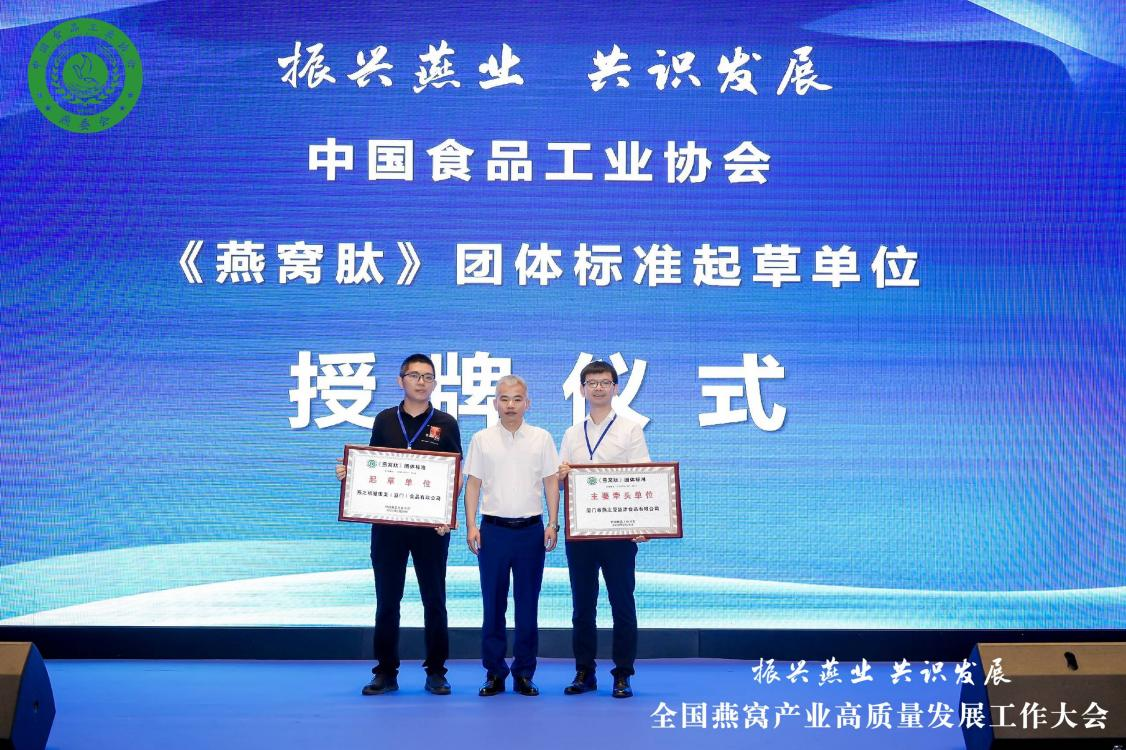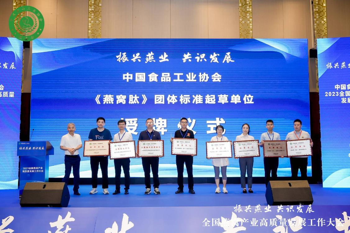 图:燕之屋等8家企业被授予《燕窝肽》标准牵头单位、起草单位牌匾