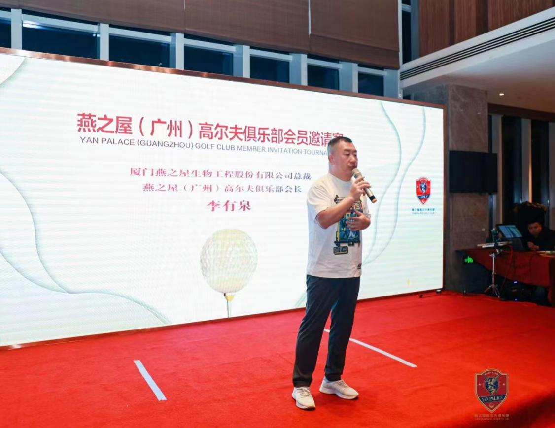图:燕之屋总裁、燕之屋(广州)高尔夫俱乐部会长李有泉发表致辞