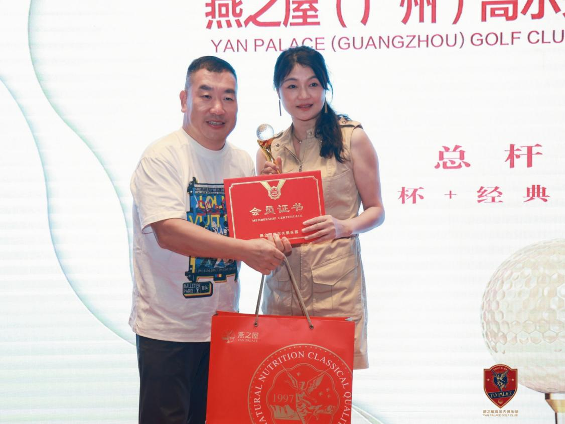 在球员嘉宾们的热情期待中,赛事总杆冠亚季军、净杆冠亚季军等奖项正式揭晓,赛事组委会依次为获奖球员颁发奖杯以及碗燕、燕之屋·中秋团圆大月饼等礼品。席间,燕之屋精心安排乐队表演、随机抽奖、互动游戏等精彩环节,现场欢笑声此起彼伏,燕之屋(广州)高尔夫俱乐部会员邀请赛就此圆满落幕。