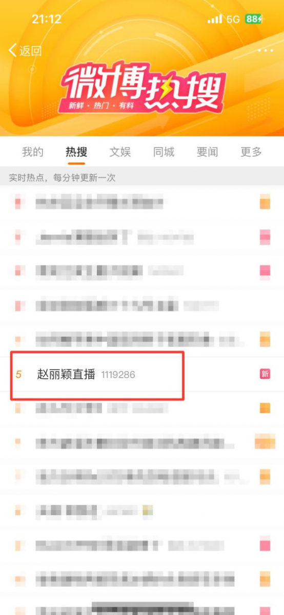 图:#赵丽颖直播#话题登上微博热搜榜5名