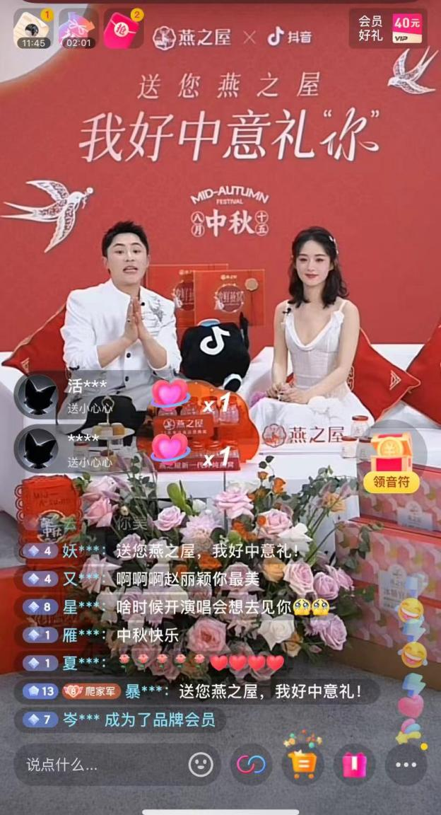 燕之屋品牌代言人赵丽颖现身官方直播间,邀您提前入手中秋“鲜”礼