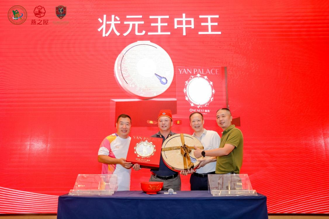 此次比赛,众高球英雄们为健康挥杆,为冠军而战,一番精彩较量,也让颁奖环节备受期待。晚宴上,赛事主办方现场揭晓男、女总杆冠亚季军、净杆冠亚季军、一杆进洞奖等多个奖项,并为获奖球员颁发奖杯、燕之屋燕窝等奖品。