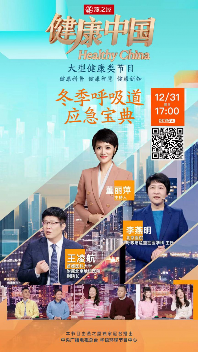 本期,由燕之屋独家冠名的CCTV-4大型健康类栏目《健康中国》特邀北京医院呼吸与危重症医学科李燕明主任和首都医科大学附属北京地坛医院副院长王凌航,与您共同探讨上呼吸道健康的话题。