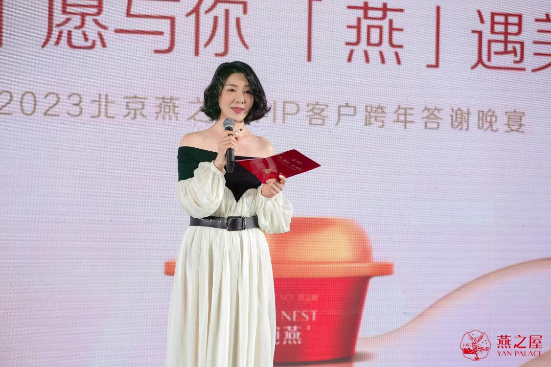 华灯初上,北京燕之屋总经理薛一瑶上台致辞,她首先表示:非常感谢各位新老朋友在百忙之中抽出宝贵的时间来参加北京燕之屋VIP客户跨年答谢晚宴,在这个美妙的夜晚,不仅是为了庆祝圣诞和元旦的到来,更是为了感谢每一位VIP客户对燕之屋品牌的厚爱与支持。紧接着她说道:“就在2023年12月12日,燕之屋成功登陆港股市场,不仅迎合了当代人健康滋补的需求,更是企业发展的里程碑事件,同时推动品牌立于时代的潮头,带动行业蓬勃发展。我们深知这些离不开在座每一位贵宾的帮助与支持,正是因为有了您们的信任和陪伴,我们才能一路走来不断成长和进步。”