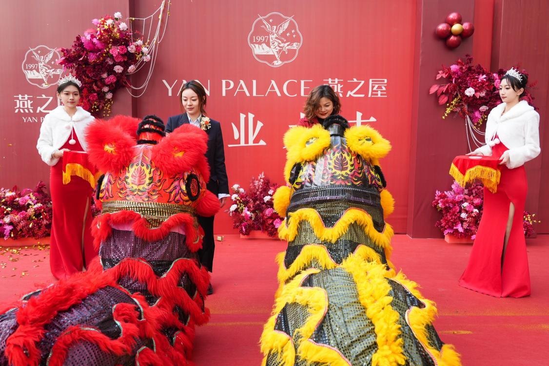 开业呈喜,举业有方。在喜气洋洋的氛围中,“迎财神”环节隆重举行,财神携美好祝愿,现场派送红包,送来滚滚财源。在锣鼓喧天、礼炮齐鸣声中,燕之屋副总经理、连锁事业部总经理翁惠贞,燕之屋邢台市场总经理田梓钰共同为祥狮点睛,为燕之屋邢台旗舰店开启吉祥如意之门,迎财神、通财运。祥狮舞姿灵活、环绕全场,将祥瑞、旺气传递给每一位嘉宾。