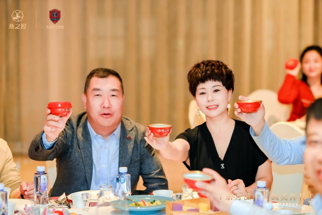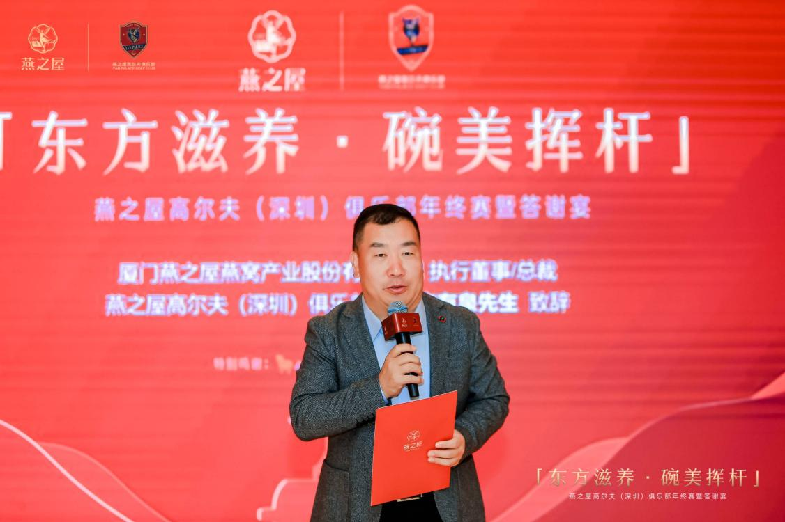 比赛结束后,所有嘉宾以及会员共聚答谢宴,品鉴佳肴、再续情谊。燕之屋执行董事兼总裁、燕之屋高尔夫(深圳)俱乐部会长李有泉上台发表致辞,并与众领导嘉宾共同举杯祝酒。燕之屋*26年专注高品质燕窝(*燕之屋指燕之屋企业),坚持“源于天然,美与健康”的品牌理念,匠造健康、营养、美味、便捷的优质燕窝,赢得市场好口碑,于2023年在香港成功上市(股票代码:01497.HK)。晚宴上,燕之屋旗下高端燕窝品牌“碗燕”产品碗燕·浓鲜款作为头盘菜亮相餐桌,其营养优质、口感浓稠,博得一众好评。碗燕·浓鲜款甄选东南亚高品质金丝燕燕窝,燕窝原料100%正规进口,天然珍贵。采用121℃鲜萃工艺,密封炖煮,牢牢锁住新鲜,产品0脂肪、0防腐剂、0增稠剂、0添加剂*(*指本产品生产过程中0%添加防腐剂山梨酸钾、苯甲酸钠,0%添加增稠剂琼脂),是日常滋养的安心之选,也是高尔夫运动人士的“碗”美拍档。