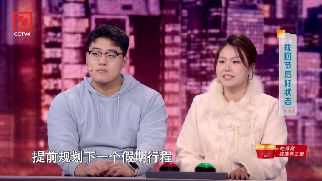第二组嘉宾是规培医师杨浡和他的堂兄弟熊竞宇,杨浡作为医生平时工作压力比较大,春节归来,出现了焦虑和腹泻等症状,他很担心这些症状会持续很久,而熊竞宇作为在读研究生,平时课业压力也比较大,春节过后,他又是如何缓解课业压力的?
