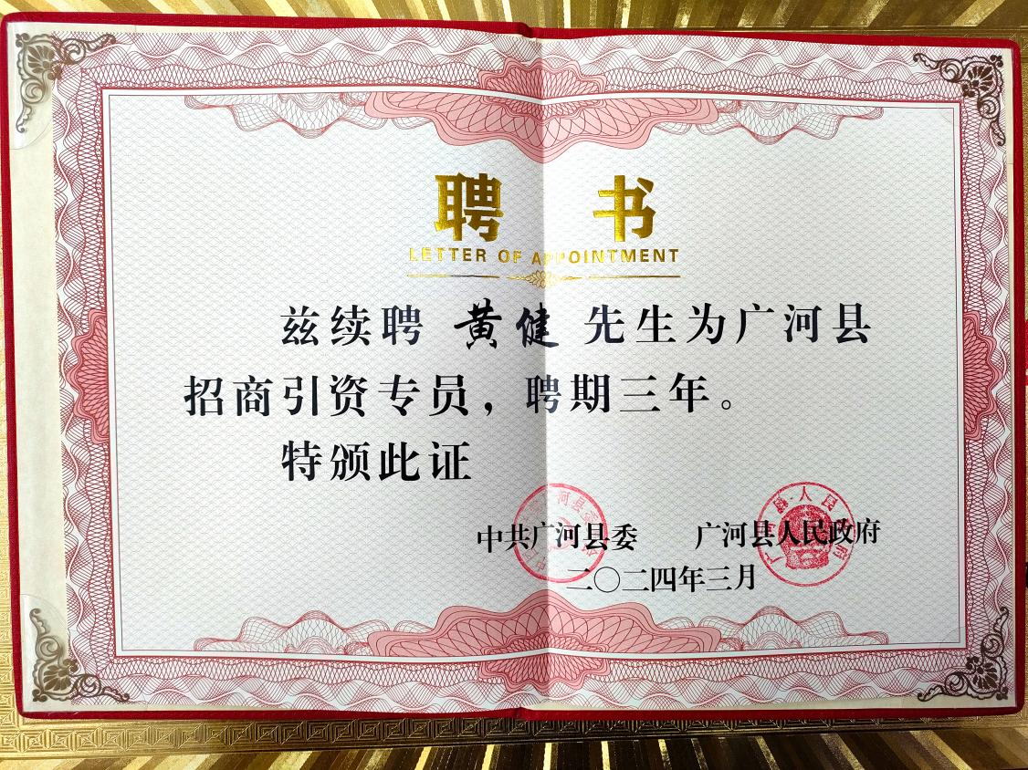 3月5日,甘肃省广河县招商引资暨优化营商环境大会成功召开。会上颁发了招商引资专员聘书,对优秀招商专员、招商引资企业、先进个人、先进单位进行了表彰,广河县燕之屋生物科技发展有限公司被评为“2023年优秀招商引资企业”,燕之屋创始人、执行董事兼董事长黄健被续聘为广河县招商引资专员。