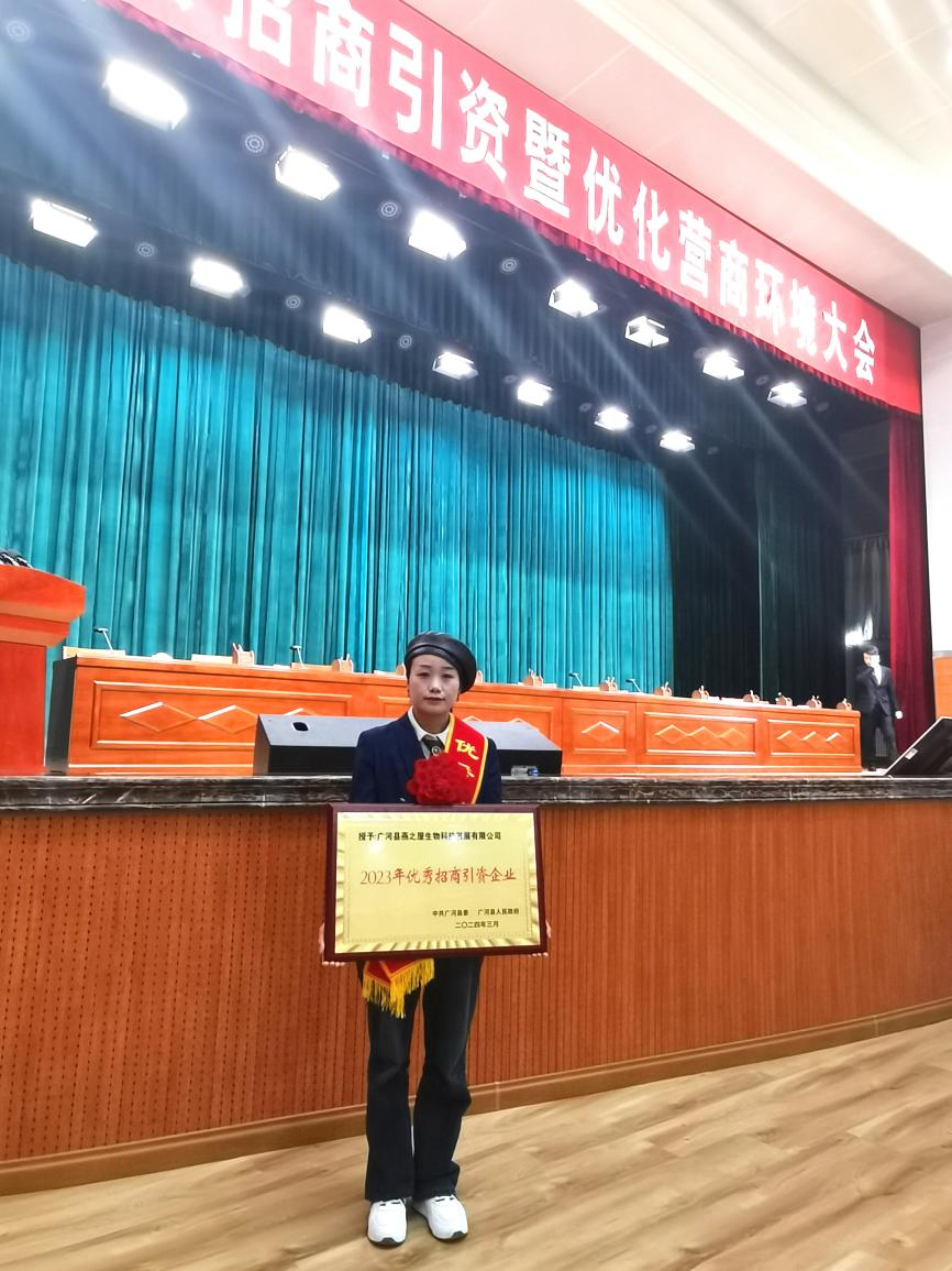 广河县燕之屋生物科技发展有限公司被评为“2023年优秀招商引资企业”