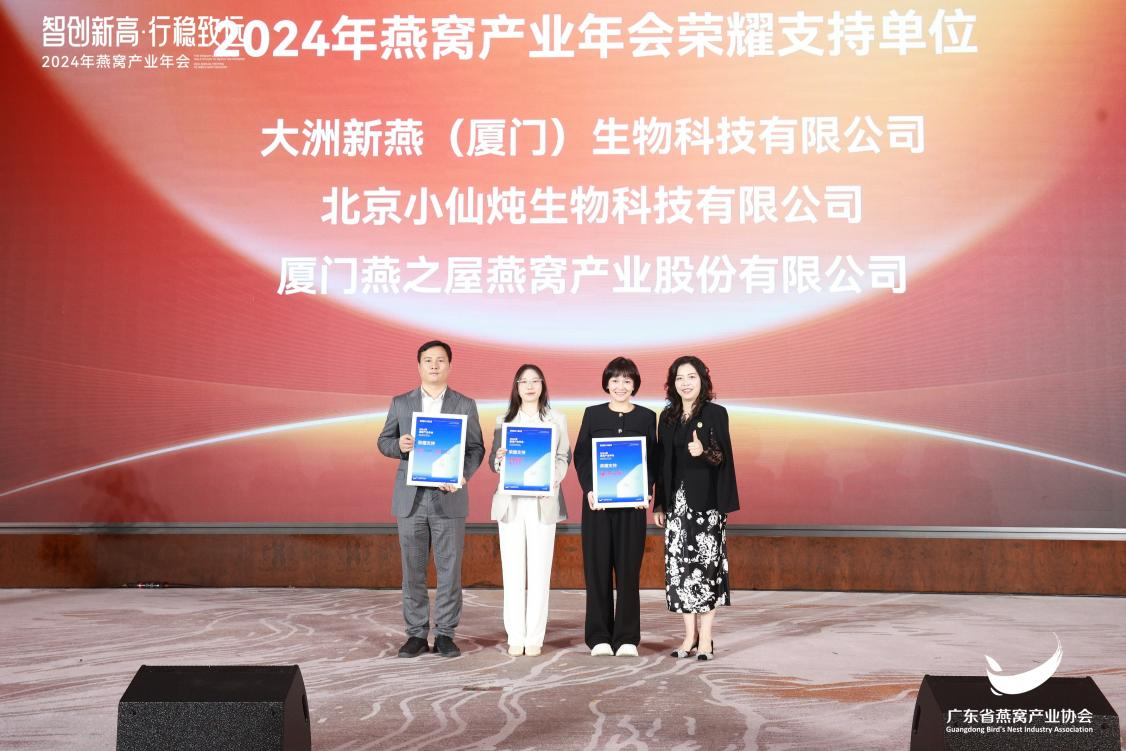 在科研成果分享环节,燕之屋高级技术经理郭宝忠发表《燕之屋燕窝肽美白、抗衰老作用及分子机制研究》主题演讲,向与会人员详细介绍了燕窝肽的形成、健康效应,并表示,经第三方人体功效评价试验,0.3%浓度燕窝肽-L具有美白的功效*(*杭州华妆科技有限公司检验报告,报告编号:HZ-F-2300161-1)。近年来,燕之屋深耕燕窝肽科研领域,关于燕窝肽的研究成果发表于JCR Q1区期刊Journal of Functional Foods为首的系列SCI收录期刊,受到国际认可。燕之屋的燕窝肽科研技术不仅获中国、香港地区、国际等专利受理,更获得2022年度营养健康产业创新技术奖、第三届国际活性肽论坛行业创新奖等多项荣誉,在拓宽燕窝基础研究范畴、提升燕窝营养价值方面贡献企业力量。