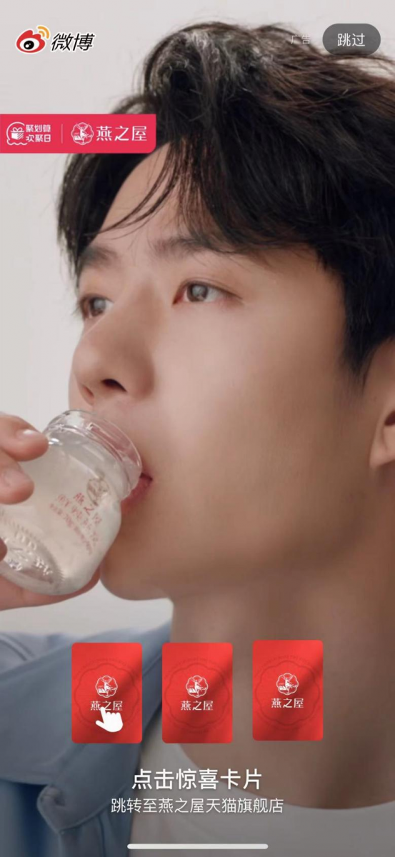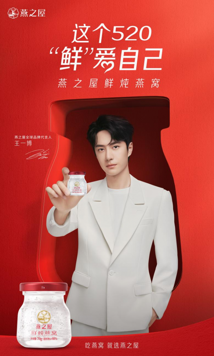 5月20日,燕之屋官宣王一博成为全球品牌代言人,全新品牌代言TVC大片同步释出,由王一博鲜活开启燕之屋520“鲜”爱自己计划。官宣当日,燕之屋与王一博于微博发布官宣博文,同时微博上线官宣开屏广告,话题#王一博燕之屋全球品牌代言人#冲上微博热搜。