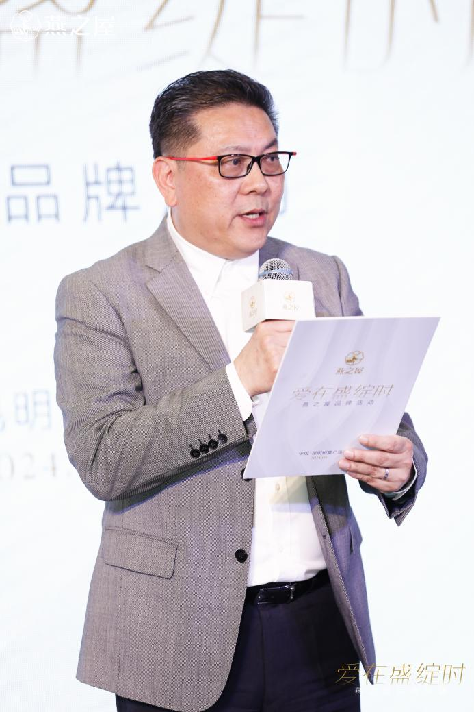 作为联合主办方,昆明恒隆广场总经理洪建山向各位嘉宾的莅临表示由衷的欢迎和感谢,并发表讲话:“2019年,燕之屋(昆明)恒隆广场店与恒隆广场同期开业,作为商户合作伙伴,共同走过了5年的时光,为消费者的品质生活提高了一个层次;在此,感谢(燕之屋)品牌一直以来对商场的支持。正逢520前夕和昆明恒隆广场520盛典的第一天,愿消费者能在这里享受优质的购物体验。”