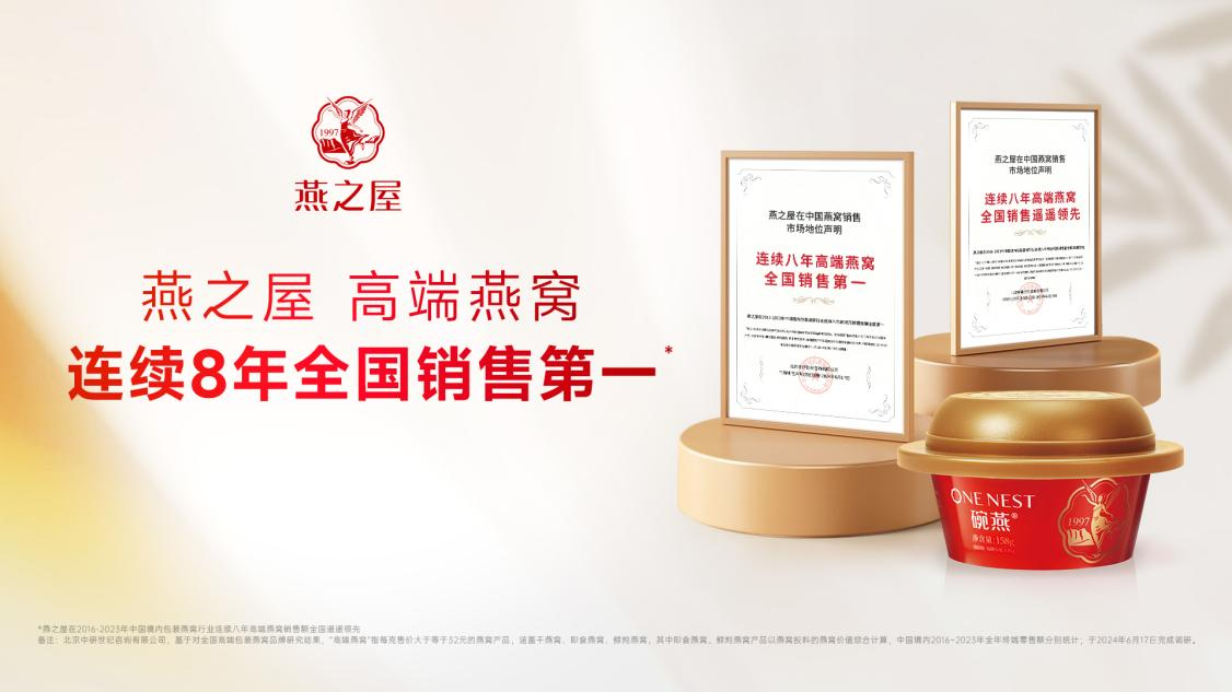 燕之屋连续八年高端燕窝全国销售稳居第一,诠释头部品牌实力