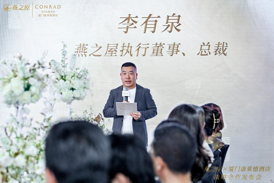 正如燕之屋执行董事、总裁李有泉在致辞中所表示:“厦门康莱德酒店,以其卓越的服务品质、独特的艺术氛围和出色的市场口碑,赢得国内外宾客的广泛赞誉。燕之屋,作为一家26年的燕窝专营企业,一直致力于传承与创新燕窝文化,将高品质燕窝产品带给更多追求品质生活的消费者。燕之屋与康莱德携手并进,共同开启燕窝文化的全新篇章,我们感到无比振奋,这也是双方战略眼光与共同愿景的完美结合。”