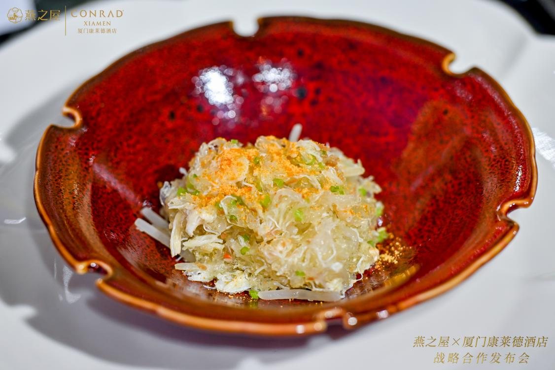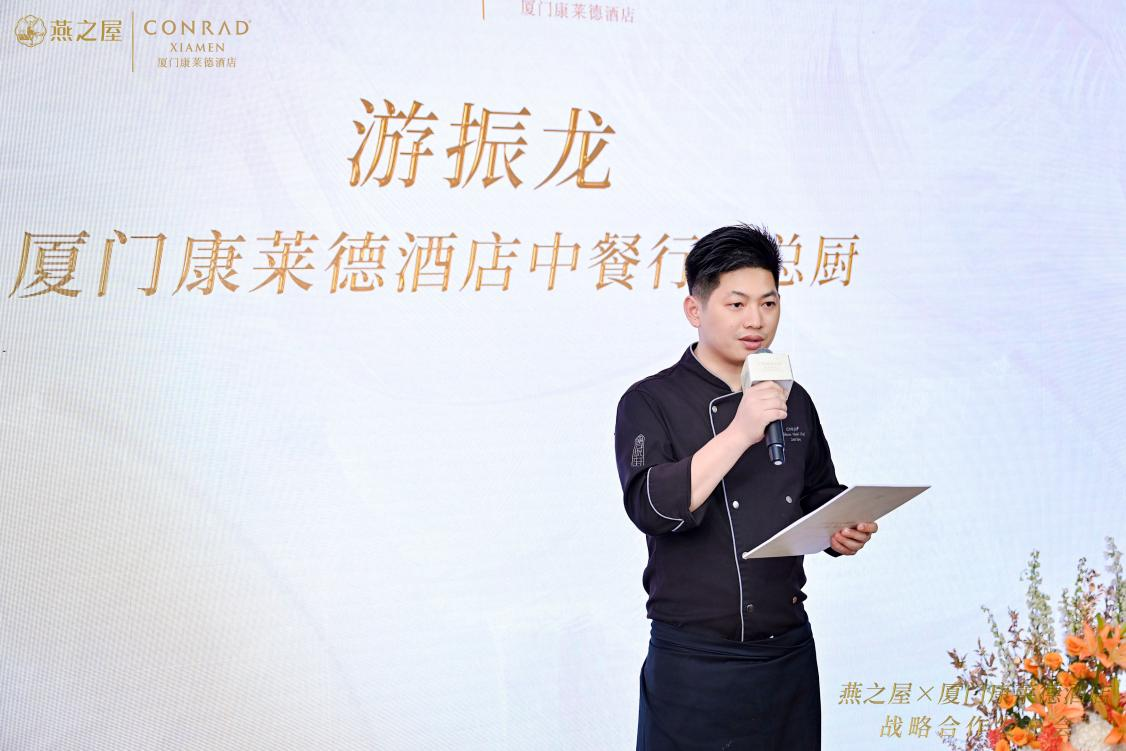 燕窝,素有“东方臻品”的美誉,自古就是皇家贵胄的御用滋补品,在现代亦是备受万千国人追捧的舌尖珍宝。其既可单独食用,滋养身心,亦可入菜匠造而成高端燕窝美馔,唤醒味蕾新体验。此次战略合作,燕之屋与厦门康莱德酒店跨界联袂,将燕窝健康滋补与餐饮艺术完美融合,推出全燕窝高定菜单,为更多人带来健康食养与艺术滋养双重体验。现场,厦门康莱德酒店中餐厅行政总厨游振龙也与来宾们分享了燕窝菜单的灵感和心得。发布会当天,这一全燕窝菜单也正式在厦门康莱德酒店中餐厅璀璨呈现,惊艳每一个滋养“食”刻。