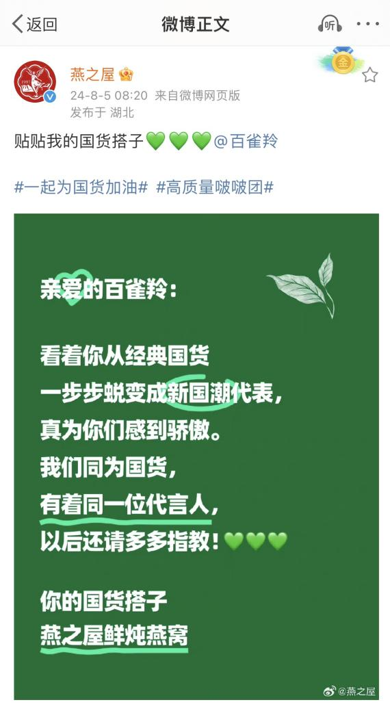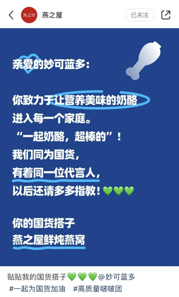 图:燕之屋祝全球品牌代言人王一博生日快乐