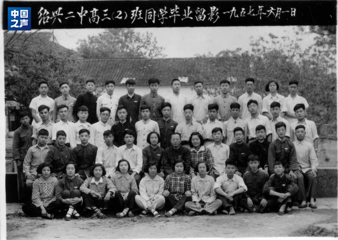 图:1957年,陶文铨(第3排左起第3人)高中毕业。