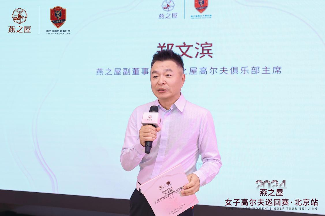 开球仪式上,郑文滨在致辞中向所有嘉宾、球友表示欢迎和感谢,并说道:“去年,燕之屋女子高尔夫巡回赛正式开赛,我们的高尔夫俱乐部也应运而生。一年多来,燕之屋在这个全新的领域不断探索,致力于将滋补珍品燕窝和时尚优雅的高尔夫相结合,为高品位人士带去美与健康生活。我们以赛事为舞台,让更多人看到女性力量的绽放;我们以俱乐部为桥梁,构建属于高球爱好者的高品质互动平台,在挥杆与交流中,共同描绘滋养身心、积极美好的生活蓝图。”随后,郑文滨携手各位嘉宾移步推杆区挥杆开球,2024燕之屋女子高尔夫巡回赛·北京站赛事正式拉开序幕。