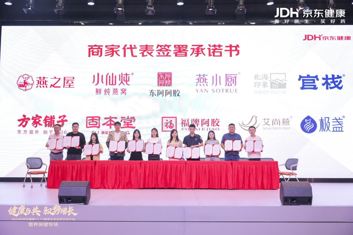 活动现场,京东健康与50余家知名品牌、10余家行业权威机构签署联盟承诺书,未来将通过批量送检、前台打标、流量倾斜、不定期抽检等全链路闭环举措,做到“真标准、真上行、真严选、真抽检”,全面加速营养保健行业全品类的标准化、规范化进程。燕之屋与京东健康签署联盟承诺书,承诺店铺销售的全线类商品将依照“京东好滋补/京东好营养标准”进行产品质量管控,同时按照京东要求的规则使用相关标。签署联盟承诺书,意味着燕之屋将在产品质量方面坚决做到:不以次充好;不夸大宣传;不进行规格上的虚标;所见即所得,杜绝货不对版;杜绝食品安全问题,避守相关法律法规,不出现食品安全方面的问题。在11.11大促来临前,联盟承诺书的签署将助力消费者轻松选购品质安全有保障的滋养佳品,真正实现“简单挑、放心用”。