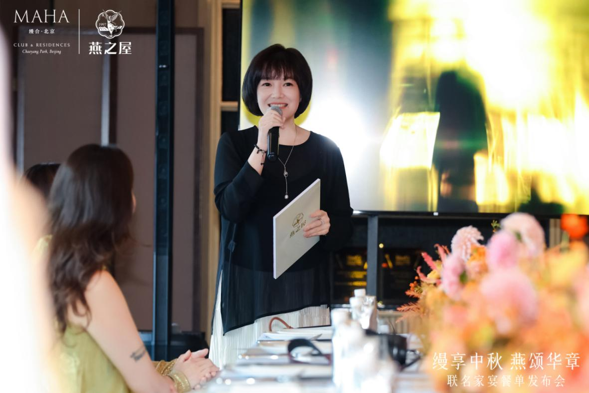燕之屋公关总监杨航则在致辞中阐释了这次跨界合作的文化深意:“燕之屋与如此杰出的伙伴合作,正是基于双方对品质、细节与人文关怀的共同追求。我们都认同,真正的高级,在于将真诚融入服务,将文化寓于美食,让每一次相聚,承载更深厚的情感与记忆。此次联名中秋家宴菜单,是我们双方团队多次沟通、灵感碰撞的成果。愿这一席宴,成为这个秋天您与家人、挚友之间温暖相聚的美好注脚。”