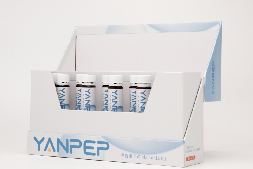 随着年龄的增长,胶原蛋白的大量流失是导致人体外表逐渐衰老的主要原因,YANPEP燕窝肽胶原蛋白精华饮打造“三肽立体配方”③,集活性燕窝肽、小分子胶原蛋白肽与小分子弹性蛋白肽于一体,并协同PQQ、透明质酸钠及白番茄等复配成分,共同塑造“3D胶原力”。其中,核心成分燕窝肽经28天试食验证可改善皮肤弹润亮泽④;鱼胶原蛋白肽吸收率近100%⑤,补充流失胶原⑥;鱼弹性蛋白肽则有效提升皮肤弹性⑦。三者协同作用,为消费者带来多方位的口服养生新体验。