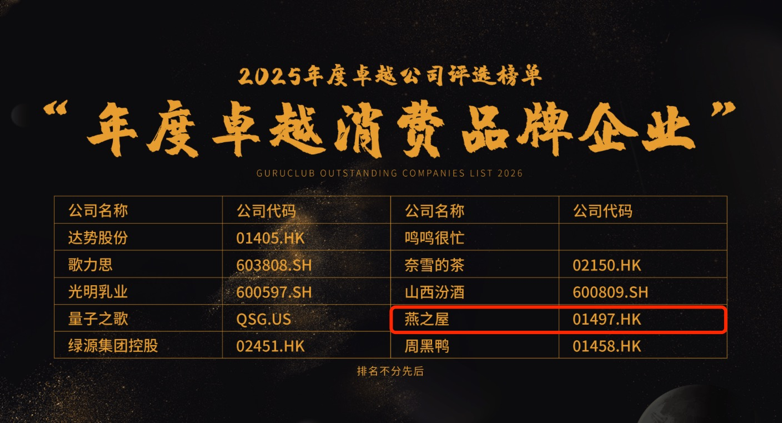 图:2025年度卓越公司评选榜单——“年度卓越消费品牌企业”