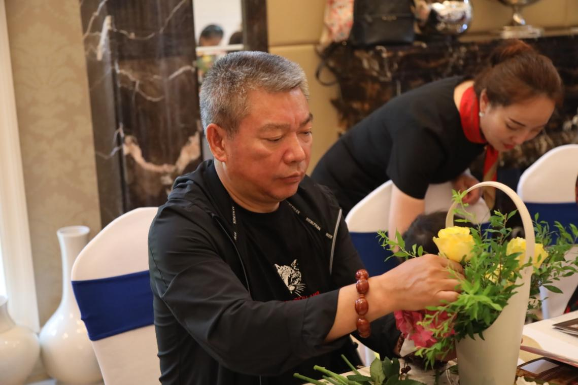 图:男性贵宾一同参与插花活动