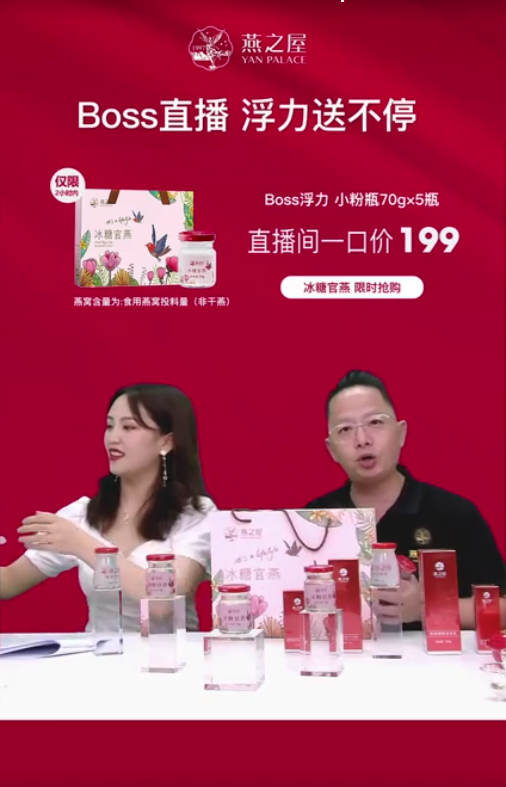 当天14:00,伴随着第一波红包雨空降燕之屋官方直播间的,还有燕之屋电商事业部总经理李良杰。开口一句“直播间宝贝们大家好”,立刻拉近了与屏幕前所有燕窝粉们的距离。在直播开始时,李良杰说道“今天的直播主题是‘铸国货品牌 养东方之美’作为国民燕窝品牌燕之屋,传承中华千年滋补文化,是责任,更是使命。”