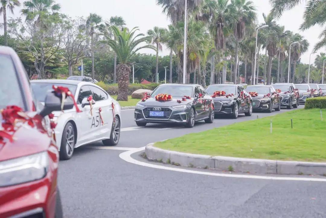 跑车护航、应援接亲、总裁证婚……5月20日下午,“厦门燕之屋首届集体婚礼”在海悦山庄酒店盛大开启,9对新人在领导、同事、亲友的见证下牵手同行,结为连理。