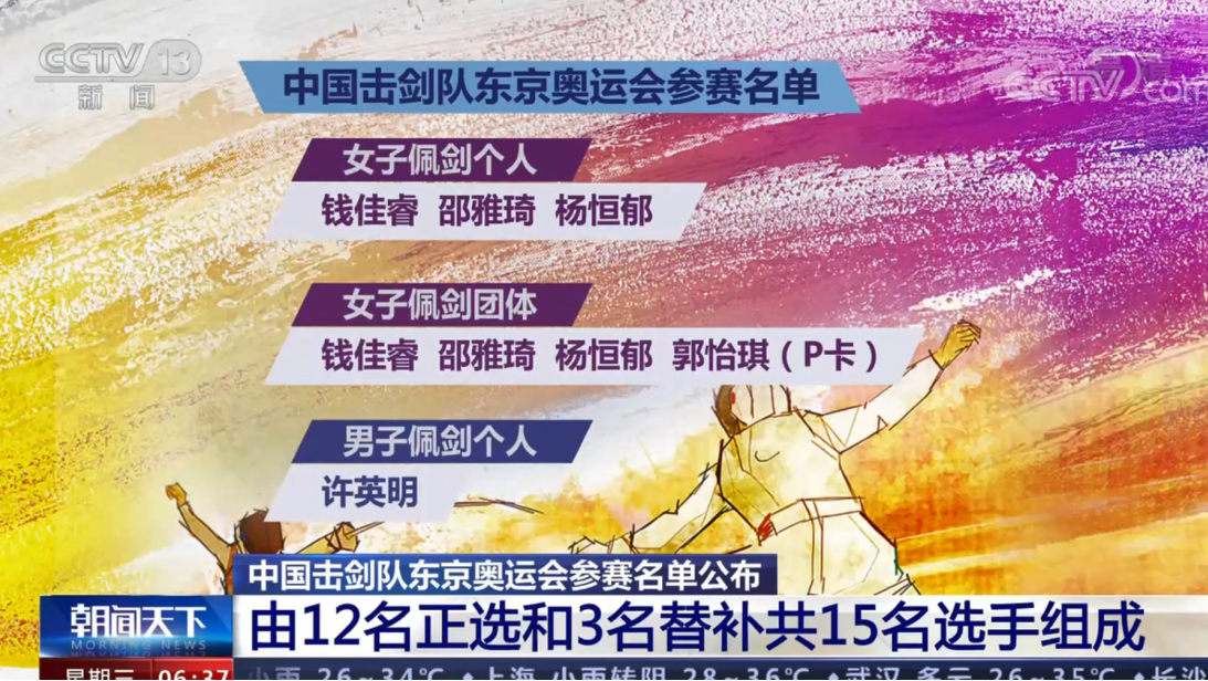 图:中国国家击剑队公布东京奥运参赛名单(部分)
