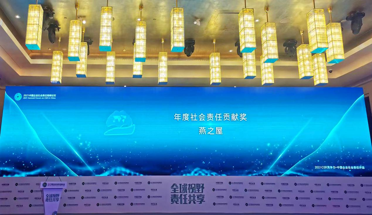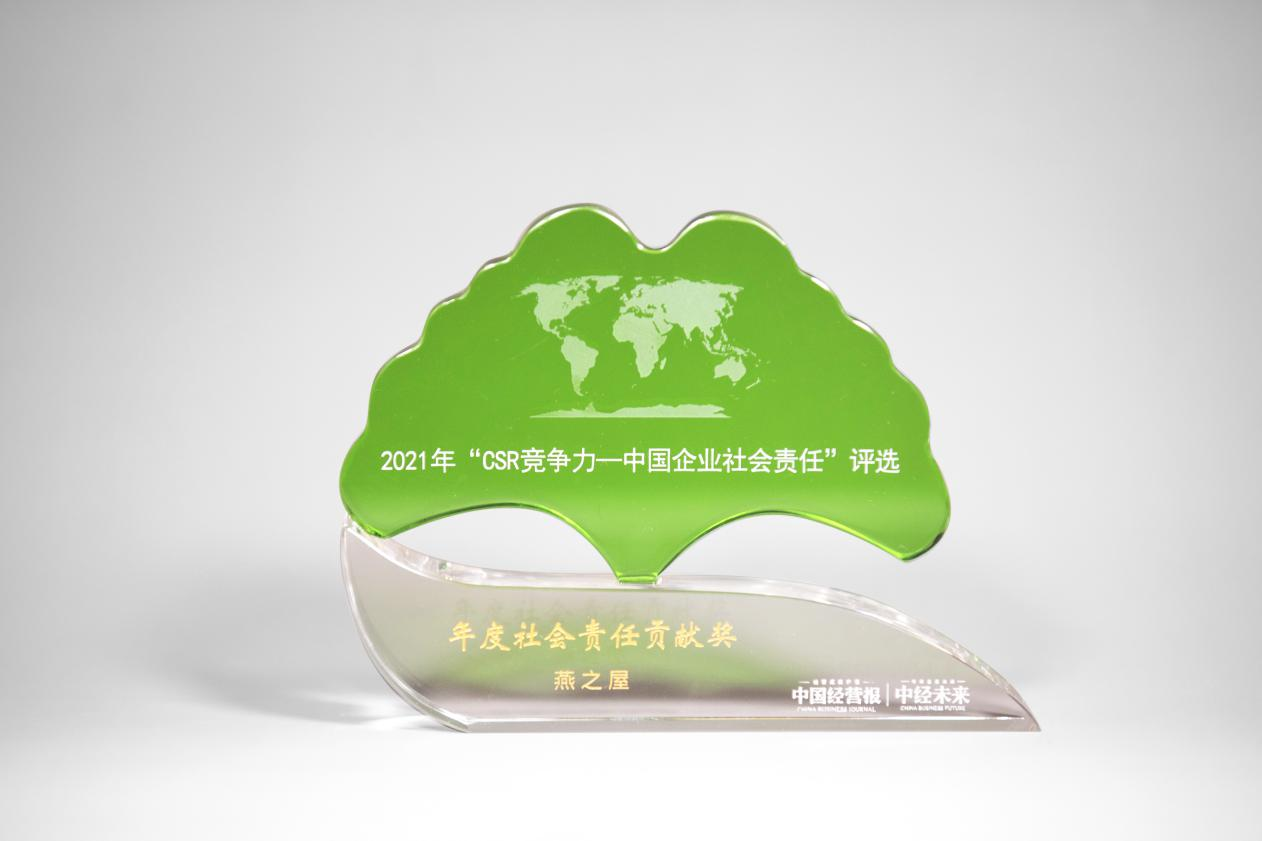 燕之屋荣获“2021CSR竞争力——中国企业社会责任评选”年度社会责任贡献奖