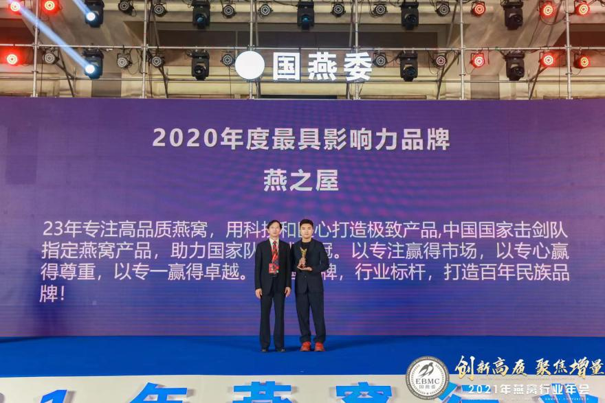 图:燕之屋获颁2020年度最具影响力品牌奖
