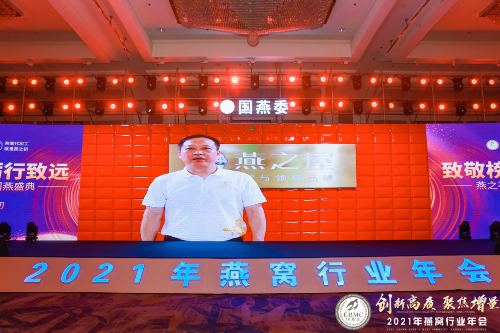 发表获奖感言时,黄健说道:“感谢国燕委授予我这个奖项,也感谢授予燕之屋2020年度最具影响力品牌。燕之屋将继续在国燕委和各位同仁的支持下,承担社会责任、履行行业义务,做一家守正利他的企业,也希望携手大家,聚力共赢,为健康中国,为燕窝行业做出贡献,共同开创燕窝行业新时代!”