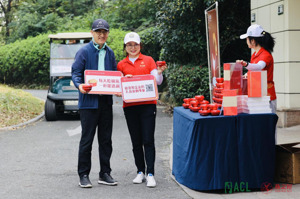 高尔夫选手,手挥球杆划出完美弧线;燕之屋碗燕,元气补给画出一道靓丽风景线。作为本次比赛的赞助商,燕之屋给予“全国业余高尔夫冠军挑战赛”全力支持,并在活动现场设立补给站,全程提供精美碗燕礼盒,为参赛选手的体能充电。赛前赛后各一碗,元气满满,球员们打趣称赞道:“吃了燕之屋,打好高尔夫”。此外,红色的“燕之屋”道旗、“吃燕窝,就选燕之屋”的标识以及附有燕之屋logo的拱门等,巧妙融合进沿途秀美的自然风光,给赛事增添了一抹色彩。