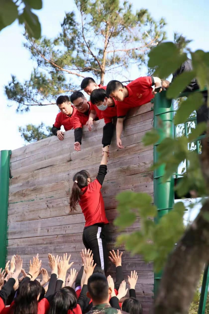 下午,成员们首先展开极限挑战——挑战在装满水的杯子中能投放多少枚回形针。各队成员就制定目标和分工计划以及目标实施展开讨论,并在条件变化中抓住机遇迎接挑战,成功完成任务。极限挑战结束后,所有参加拓展的成员迎来了最后一项也是难度最高的挑战——翻越毕业墙。众人分别扮演不同角色,协心同力,用燕之屋人的信念、理想和凝聚力共同克服万难完成了不借助任何道具、不触线的情况下翻越4米3高墙的任务。