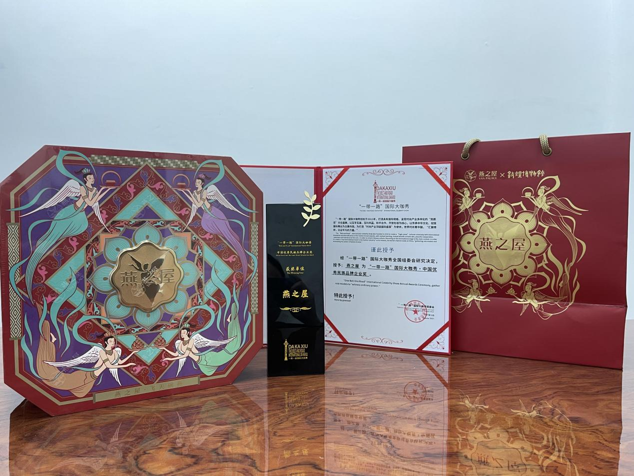 图:燕之屋荣获2021“一带一路”国际大咖秀·中国优秀民族品牌企业奖