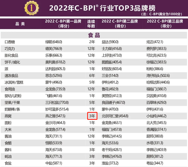 第三次荣膺桂冠!燕之屋问鼎中国品牌力指数燕窝品类榜首