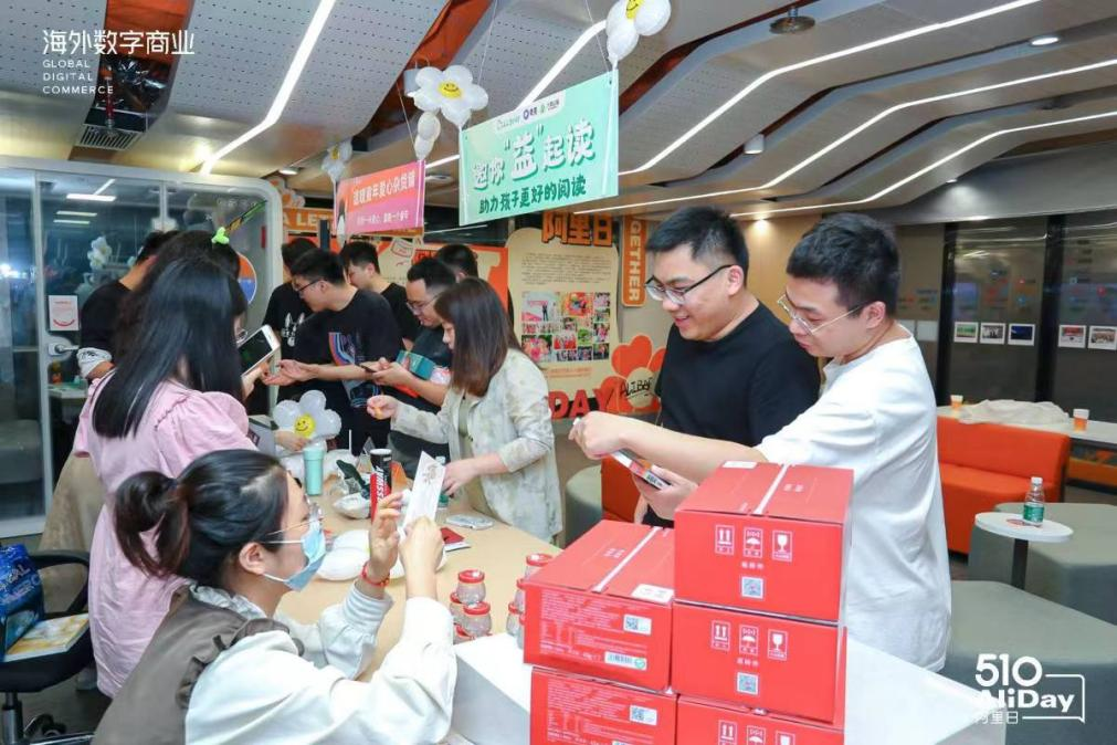 阿里日,是阿里巴巴一年一度的大规模员工庆典,节日的设立是为了纪念2003年5月“非典期间”阿里人面对隔离依旧坚守的阿里精神。本届阿里日,阿里巴巴国际站闽汕大区动员全体员工积极参与“公益捐赠”,并在活动现场设置了“温暖童年爱心杂货铺”、“邀你‘益’起读”区域,以“公益游乐园”的形式引导大家参与到公益行动中。现场,阿里巴巴员工踊跃参与,将家中的闲置物品带来公司义卖,所得善款均捐赠给山区的小朋友,整个过程洋溢着欢乐和温馨的气氛。为了延续和倡导公益,阿里巴巴国际站闽汕大区同期举行了“益起读”活动,通过录音阅读图书给孩子们听的方式,激发孩子的阅读兴趣。