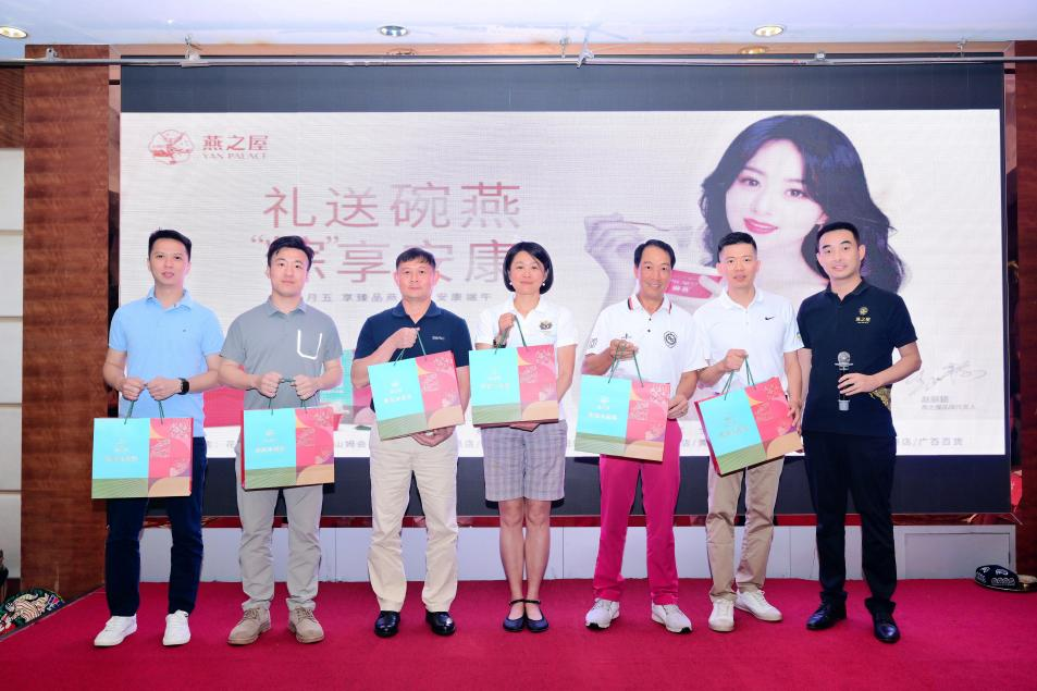当晚,燕之屋总裁李有泉出席,在颁奖环节登台为球员李清河颁发了总杆冠军奖——燕之屋经典碗燕10碗装一盒,此外,中大岭院校友会高尔夫俱乐部球队队长李志豪荣获净杆冠军奖,被颁予燕之屋小红碗10碗装一盒,大家纷纷鼓掌祝贺,现场氛围其乐融融。