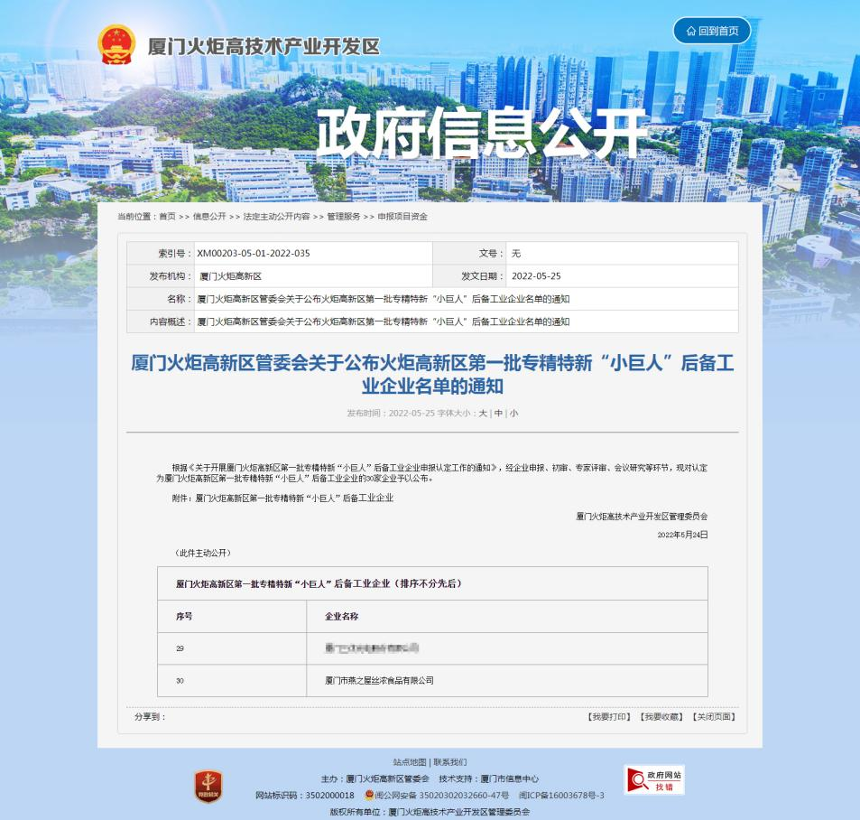 近日,厦门火炬高新区第一批专精特新“小巨人”后备工业企业名单正式对外公布,包括燕之屋在内的30家企业榜上有名。