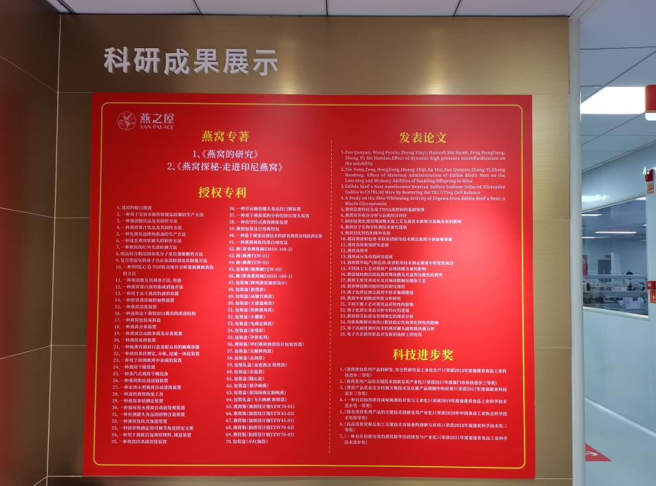图:燕之屋燕窝研究院科研成果展示
