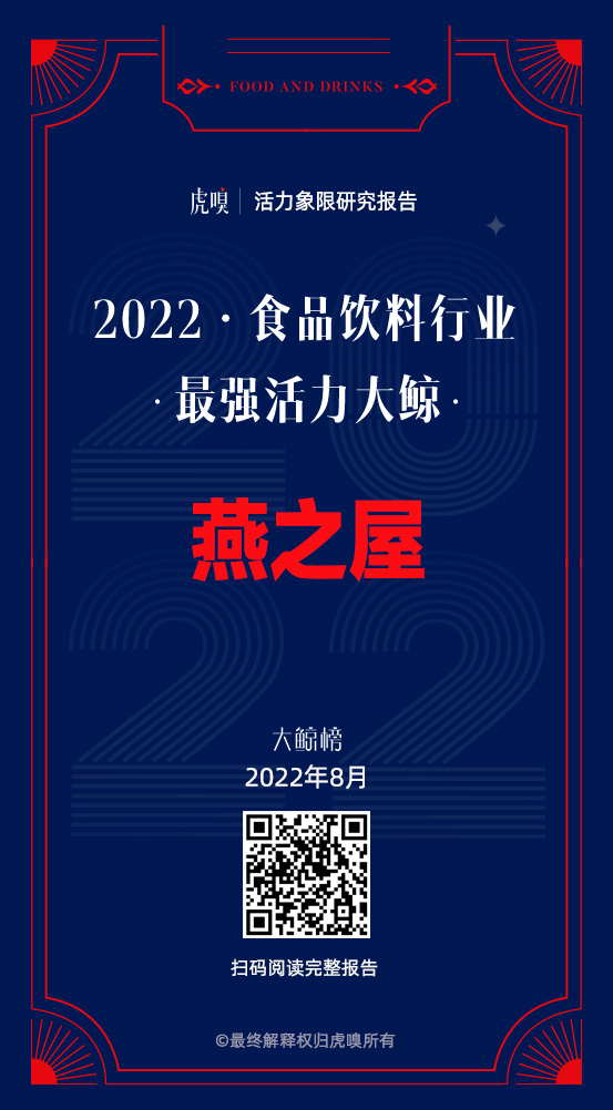 近日,虎嗅最新发布的《2022食品饮料行业·活力象限研究报告》中,燕之屋与茅台、五粮液、伊利等知名品牌入选“第一象限——最强活力大鲸”。