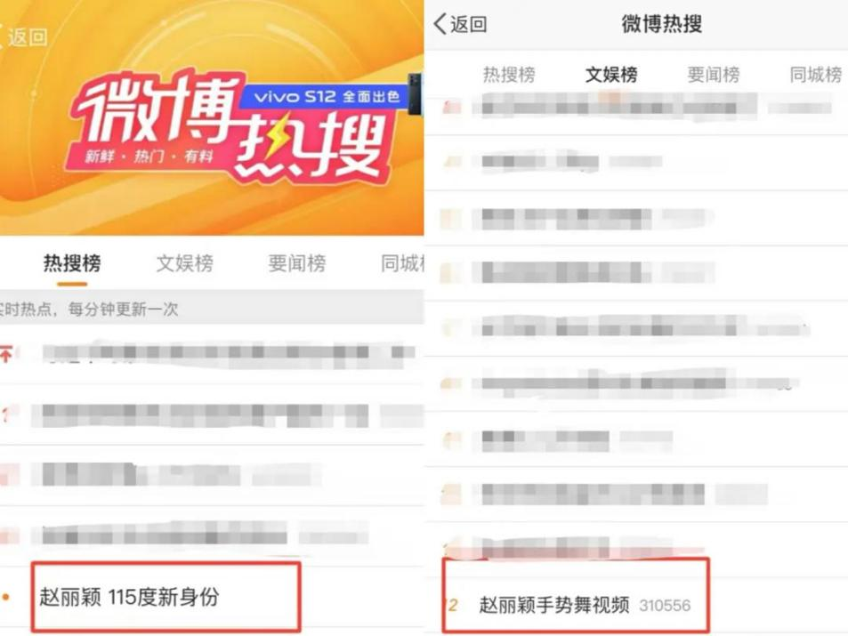 图:#赵丽颖115度新身份#等话题登上微博热搜